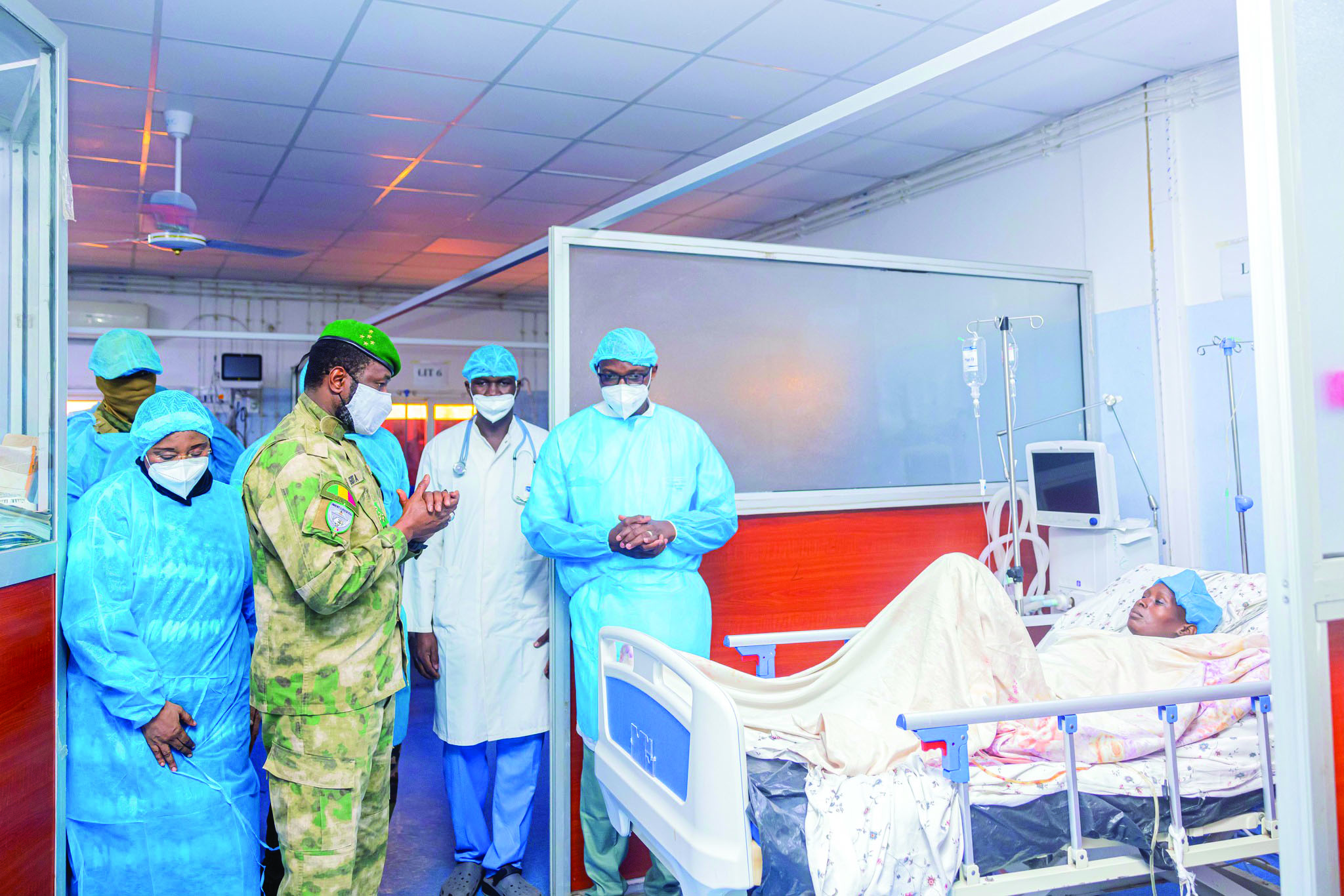 Le Président de la Transition, le général d’Armée Assimi Goïta, chef de l’Etat, à la suite des attaques complexes, coordonnées et simultanées survenues à Kati, Bamako, Mopti, Gao et Kidal, a rendu visite aux blessés civils et militaires au CHU Bocar-Sidi-Sall de Kati.