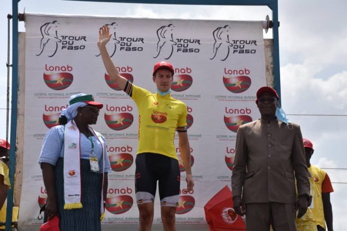 C’est parti pour le 33e tour cycliste international du Faso. Le 29 octobre 2021, le belge Wouters Rutger a été le premier à franchir la ligne d’arrivée de la 1re étape à Bobo-Dioulasso. Sur une distance de 125 km dont un circuit fermé de 4 fois 10 km dans la ville de Sya, 82 coureurs de 15 équipes ont pris le départ de Banfora. Après un départ devant le stade régional de Banfora, le peloton est resté calme jusqu’au km 21,3 du grand prix de la montagne enlevé par l’algérien Lagab Azzedine. Il est suivi de Souleymane Koné de l’équipe nationale du Burkina Faso et du sud-africain Mugisha Samuel. Passé cette étape, quelques coureurs tentent une échappée. Mais très vite, ils sont rattrapés par le peloton. Au premier point chaud à Toussiana (29km3), Hamza Yacine est le premier sur la ligne. L’algérien devance respectivement les marocains El Arbaoui Adil et Maatougui Nasr Eddine. Après Toussiana, une échappée de 6 coureurs se forme avec à sa tête le vainqueur du tour du Faso 2013, le Burkinabè Abdoul Aziz Nikiema de l’équipe régionale de l’Ouest. Le groupe d’échappée met un écart de plus de 47s avant d’être rattrapé par le peloton à l’entrée de Taga, un village après Toussiana. A cet instant, débutent les soucis du champion national, Paul Daumont. D’abord victime d’une crevaison, Il est dépanné avec un vélo qui ne lui convenait pas. Il a ensuite réclamé, après quelques kilomètres, son vélo de départ après changement de roue. Malgré tout le dernier vainqueur du dernier tour du Bénin n’était pas à l’aise.