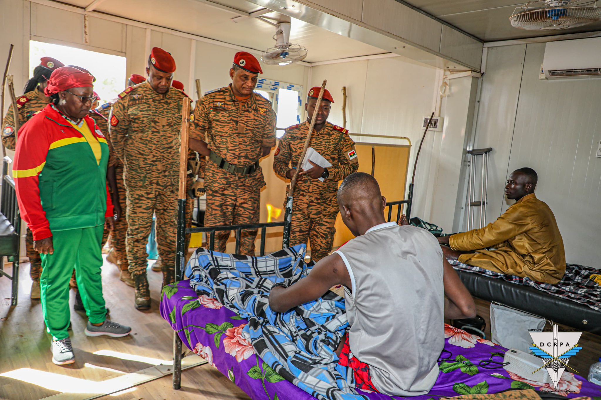 des chefs militaires et paramilitaires et des autorités administratives de la région, il a remonté le moral et souhaité un prompt rétablissement aux militaires en soin. Il en a profité pour féliciter le personnel de santé de la direction du service de santé des armées et leurs collègues civils qui les appuient, pour le travail formidable abattu au quotidien aussi bien au profit des FDS que des populations civiles.