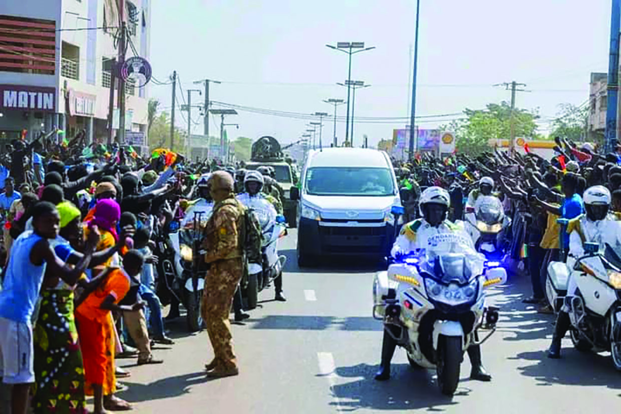 malienne. A sa descente d’avion, il a été accueilli, chaleureusement, par son homologue, le général d’armée Assimi Goïta, Président en exercice de la Confédération, sur le tarmac de l’aéroport international Modibo-Keïta de Bamako. Après un bref entretien, en tête-à-tête, au pavillon présidentiel, les deux chefs d’Etat se sont dirigés vers le Palais présidentiel de Koulouba. Sur les artères de la ville, ils ont été chaleureusement acclamés par une foule en liesse, venue témoigner leur attachement à la dynamique de construction de l’espace du Sahel.