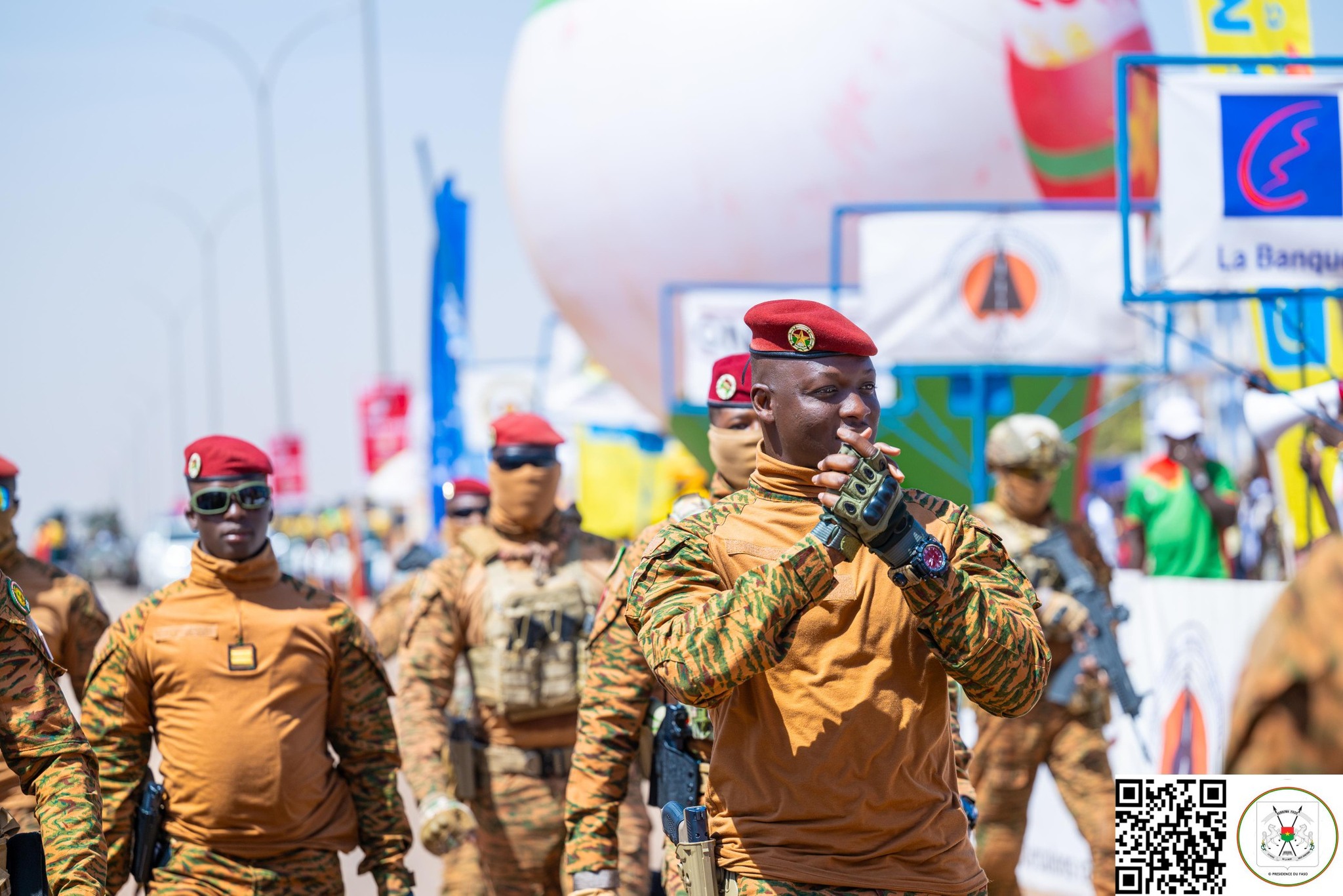 Le Président du Faso, Chef de l’État, le Capitaine Ibrahim TRAORÉ assiste, ce dimanche, 2 novembre 2025, sur le boulevard Thomas-SANKARA, à la dernière étape de la 36e édition du Tour cycliste international du Faso.