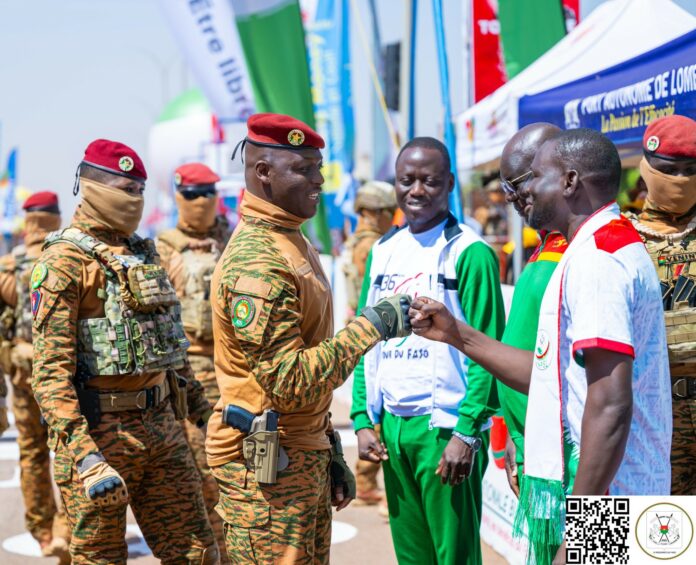 Le Président du Faso, Chef de l’État, le Capitaine Ibrahim TRAORÉ assiste, ce dimanche, 2 novembre 2025, sur le boulevard Thomas-SANKARA, à la dernière étape de la 36e édition du Tour cycliste international du Faso.