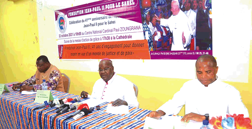 Le 41e anniversaire de l’appel de Ouagadougou lancé par le Pape Jean Paul II en 1980 va être commémoré, le vendredi 22 octobre prochain dans la capitale burkinabè sous le thème : « Fondation Jean-Paul : 41 ans d’engagement pour donner espoir en vue d’un monde de justice et de paix ». A quelques jours de l’événement, le Conseil d’administration de la Fondation Jean-Paul II pour le Sahel a animé une conférence de presse, le mercredi 13 octobre 2021, à Ouagadougou.