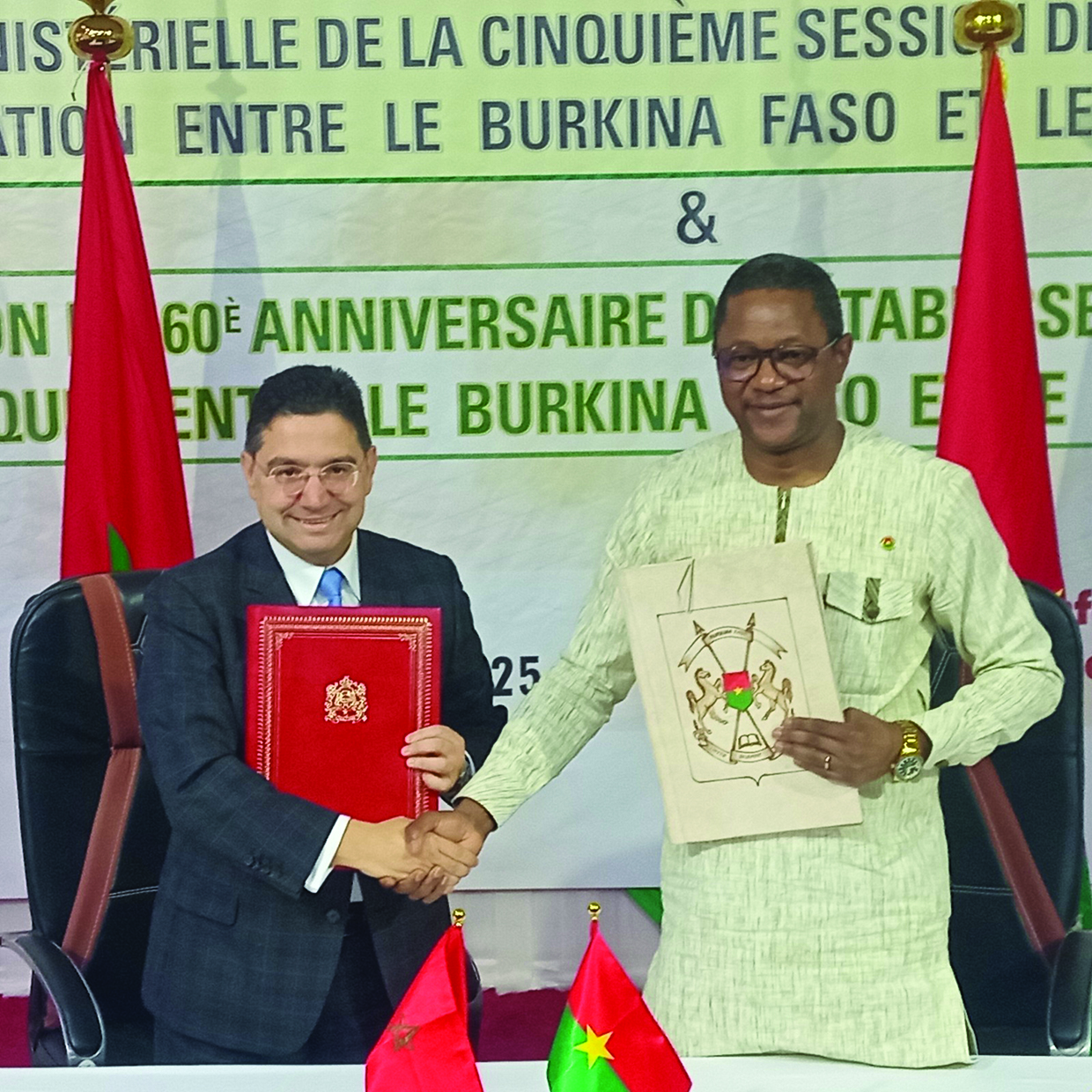 Les relations diplomatiques entre le Burkina Faso et le Royaume du Maroc sont vieilles de 60 ans. Au fil des décennies, cette coopération fructueuse s’est inscrite dans l’action et l’efficacité diplomatique au service de leurs peuples respectifs. Pour renforcer davantage cette dynamique vers l’avenir, la réunion ministérielle de la 5e commission mixte de coopération entre le Burkina Faso et le Royaume du Maroc, tenue, mercredi 10 décembre 2025, à Ouagadougou, a servi de cadre pour signer 12 nouveaux accords de coopération.