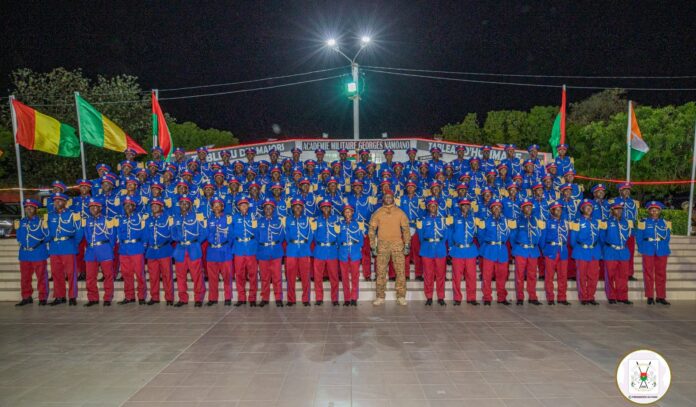 Entrés le 12 novembre 2022 à l’Académie militaire Georges-Namoano, les cent élèves-officiers d’active ont été déclarés, à l’issue de leur formation, aptes à rejoindre les rangs de l’armée. Ils ont donc reçu leurs attributs et insignes, faisant d’eux des sous-lieutenants.