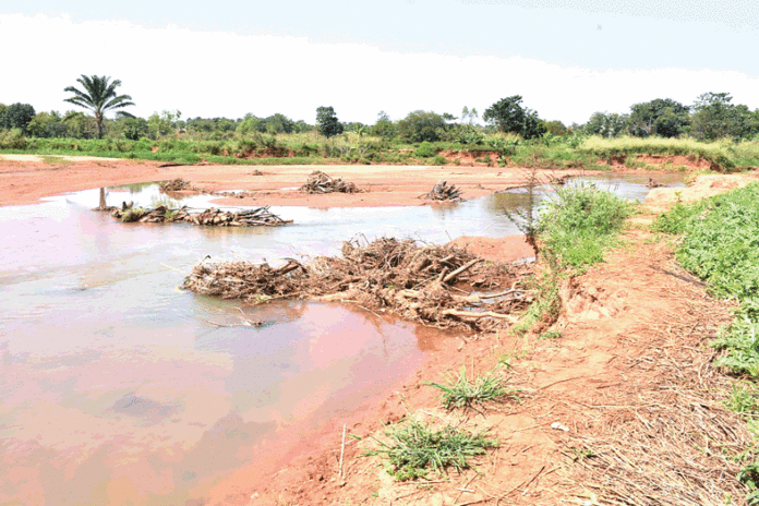 Les productions sont diversifiées avec notamment le maïs, le riz, l’arachide, les légumes et les plantations de bananes qui longent le cours d’eau. Selon Simplice Sanou, le lit du cours d’eau était à l’époque très rétréci et profond. « Il pouvait atteindre plus de trois mètres de profondeur mais aujourd’hui, avec la dégradation des berges dues à plusieurs facteurs, l’eau dépasse à peine les genoux » justifie-t-il, avec regret. La forêt qui jonchait le cours d’eau a disparu pour céder la place aux champs. L’occupation anarchique des bords de la rivière, la divagation des animaux, les pluies diluviennes et l’érosion ont contribué à l’ensablement du cours d’eau, confie-t-il.