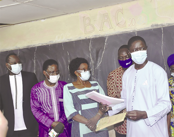 Le budget pour l’organisation de l’examen du baccalauréat session de 2020 est estimé à 5 milliards FCFA aux dires du ministre. Le lycée Lompolo-Koné de Banfora dans la région des Cascades a abrité le démarrage officiel de cette session. Accompagné de ses collaborateurs et des autorités locales, le ministre de l’Enseignement supérieur, de la Recherche scientifique et de l’Innovation, le Pr Alkassoum Maïga a donné le top de départ des épreuves. Après s’être rassuré de la mise en place du dispositif pratique dans chaque salle de composition, Alkassoum Maïga a encouragé, à chaque fois, les candidats et leur a souhaité « bonne chance ». « C’est un test de niveau, ce que vous allez faire n’est pas sorcier », a-t-il lancé aux postulants au baccalauréat.