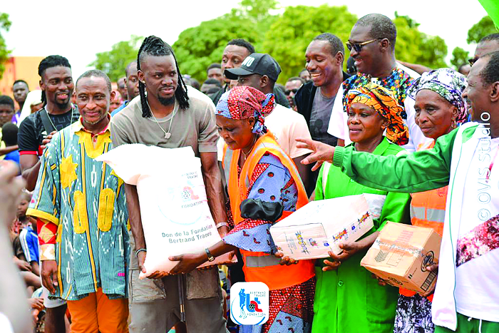 Bertrand Traoré (B.T.) : Vous savez, depuis 2019, chaque fois que je viens au Burkina, soit en regroupement avec les Etalons ou pour les vacances, nous essayons avec mes frères, mes amis et collaborateurs de la Fondation, d’organiser quelque chose en faveur des enfants ou d’apporter de l’aide aux gens avec nos modestes moyens. Cette fois-ci, nous avons essayé de faire quelque chose de plus grand parce que la situation du pays est difficile à cause de l’insécurité, de la souffrance des populations et des nombreuses attaques terroristes aux quatre coins du pays. Nous avons initié ces journées caritatives afin de créer un élan de solidarité à l’échelle nationale autour de nos forces de défense et de sécurité et des volontaires pour la défense de la patrie qui se battent au péril de leur vie pour le pays. Nous avons mobilisé des ressources humaines et matérielles afin d’apporter du réconfort aux veuves et aux orphelins de tous ces soldats, gendarmes, policiers, forestiers, douaniers et tous les autres corps paramilitaires qui se battent pour notre sécurité contre les groupes terroristes. Par la grâce de Dieu, et grâce aux soutiens de bonnes volontés, notre objectif premier a été atteint. Ce qui nous a permis de venir en aide à des familles en situation difficile dans des quartiers populaires de Ouagadougou et de Bobo-Dioulasso. C’est d’ailleurs l’occasion pour nous de dire merci ici à toutes ces bonnes volontés qui ont bien voulu répondre positivement à notre élan de solidarité. Loin de moi l’idée de profiter de vos colonnes pour une publicité gratuite (rires), permettez que je remercie les présidents directeurs généraux de EBOMAF et de CORIS Group, CANAL + Burkina, la SOCOGIB, des bénévoles et membres de la Fondation, le président de la Ligue des Hauts Bassins, le patron de Rahimo, des anciennes gloires du football burkinabè, des journalistes sportifs, des artistes culturels, des populations de Ouagadougou et Bobo-Dioulasso, ainsi que tous ceux qui de façon spontanée ont contribué à la réussite de ces journées caritatives. Je n’oublie pas le chef d’état-major des armées, les autorités coutumières et religieuses de Bobo Dioulasso et le haut-commissaire de la région des Hauts Bassins. Ces actions s’inscrivent dans la lignée d’autres opérations d’envergure menées depuis déjà plusieurs années par la Fondation Bertrand Traoré.