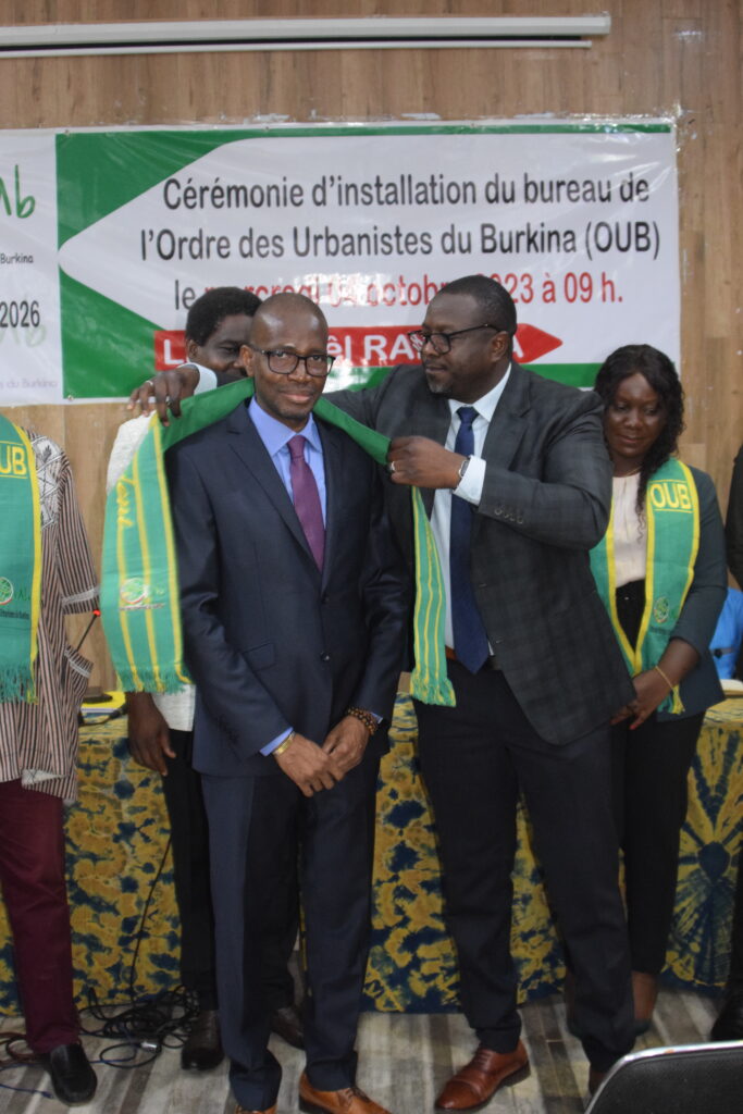 Le président du conseil de l’ordre des urbanistes du Burkina (OUB) Daouda Ouédraogo et les 6 autres membres du bureau ont été installé officiellement dans leurs fonctions, le 4 octobre 2023 à Ouagadougou par le directeur de cabinet du ministre de l’urbanisme, des affaires foncières et de l’habitat Amed Sory. Élus neuf mois plutôt, le 2e conseil de l’OUB a un mandat de 3 ans qui couvre la période 2023-2025. « Aujourd’hui, j’ai l’honneur d’installer, au nom du Ministre en charge de l’urbanisme, le deuxième Conseil de l’Ordre des Urbanistes du Burkina, une institution qui jouera un rôle clé dans la promotion de l’excellence professionnelle, de l’éthique et de la collaboration au sein de la communauté des urbanistes. Ce Conseil sera le gardien des normes et des valeurs qui définissent la profession, et il veillera à ce que les actions des urbanistes servent toujours l’intérêt public », a déclaré le directeur de cabinet.