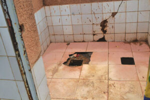 Dans la journée, Rasta et ses codétenus sont obligés de « quémander » les toilettes des autres cellules pour leurs besoins. Pire, confie-t-il, la nuit, il n’y a pas de solutions pour celui qui veut se débarrasser de ses excrétas. « Toutes les cellules se ferment la nuit. Si, nous voulons déféquer, nous le faisons dans des sachets plastiques en attendant, la journée pour s’en débarrasser, parce que celle-ci est inutilisable. Nous avons informé l’administration de la situation, mais depuis près de deux ans maintenant, aucune réparation », fulmine-t-il. Un tour dans la cellule n°3. Les ouvrages d’assainissement sont dans un état de dégradation très avancé. Le tuyau d’évacuation des eaux usées et excrétas est en mauvais état. Perforées par endroit, les eaux usées ruissèlent partout dans la cellule. « Nous avons attaché, ce plastique de sorte que les eaux usées des toilettes des cellules d’en haut qui retombent via le plafond coulent directement dans nos toilettes usagées », explique A.C. Depuis trois mois, c’est aussi la croix et la bannière pour G.B et ses 17 codétenus de la cellule n°4 pour se débarrasser des usées et déchets humains qui envahissent régulièrement leur « cachot ». Dans leur geôle, le W.C est hors d’usage. Les robinets gâtés. « Aucun dispositif d’assainissement ne fonctionne pas. Le robinet, les tuyaux de la douche suintent… Nous vivons vraiment un grand calvaire », fait-il remarquer.