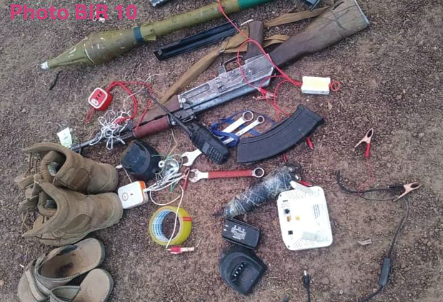 Le butin saisi comprend notamment quatre motos, un fusil AK-47, des chargeurs d’AK-47, une roquette, un poste radio TYT, un téléphone, ainsi que du matériel de couchage et de mécanique. Les opérations se poursuivent pour sécuriser la zone et éliminer toute présence hostile.