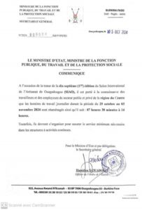 Burkina Faso/SIAO 2024 : les horaires de travail journalier durant la période du 25 octobre au 03 novembre 2024 sont réaménagés de 07 heures 30 minutes à 14 heures