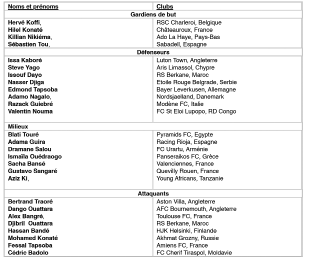 Le sélectionneur national, Hubert Vélud, a publié la liste des 27 joueurs convoqués pour la CAN 2023, au cours d’une conférence de presse, hier mercredi 20 décembre 2023, au siège de la Fédération burkinabè de football à Ouagadougou.