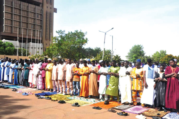 La Place de la nation a été le lieu de convergence de plusieurs fidèles musulmans du Burkina Faso. 9 h 00 début effectif de la prière tant attendue, prière d’une dizaine de minutes qui s’achève par le sermon de l’imam, Abdallah Ouédraogo, marqué par des bénédictions, des conseils aux musulmans sur le jeûne et leurs comportements après Ramadan. Le Moogho Naaba Baongo, l’ex cardinal Philipe Ouédraogo, et une équipe gouvernementale avec à sa tête, le ministre de l’Administration territoriale et de la Mobilité, Emile Zerbo, ont assisté à cette prière de l’Aïd el-Fitr.
