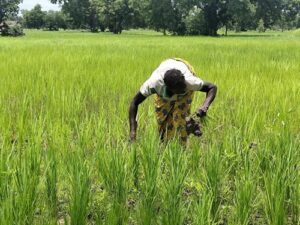 Dieudonné Sankara, la quarantaine bien entamée, s’active au milieu de sa parcelle. Originaire de Gombio, dans la commune de Sanaba, il a fui, il y a deux ans, les assauts répétés des groupes armés terroristes. Autour de lui, sa famille, d’une trentaine d’âmes, s’affaire dans le champ. « Nous avons tout laissé derrière nous, mais ici, nous avons retrouvé la dignité », dit-il en redressant la tête. Sur un hectare de rizière, Dieudonné Sankara cultive plus que du riz : il cultive l’espoir.