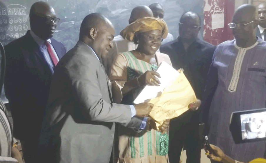 De concert avec l’ensemble des chefs-lieux de régions et au retentissement du coup de la sirène sur le coup de 8 heures, le ministre Bassolma Bazié, assisté de la ministre en charge dirctde l’environnement, Maminata Traoré/Coulibaly, a procédé à l’ouverture du pli contenant l’épreuve du concours des GSP dans la salle 1 du jury 2.