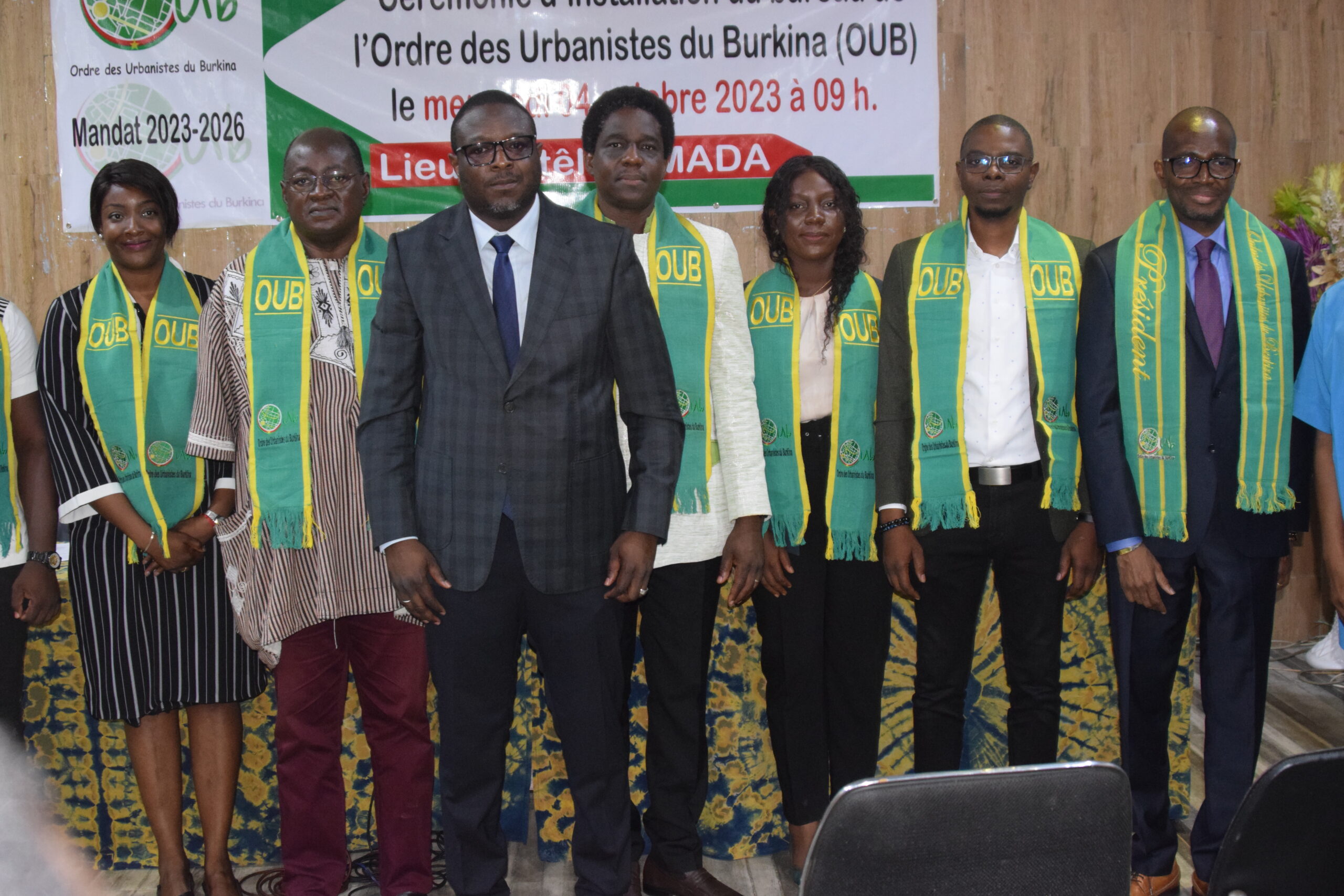 Le président du conseil de l’ordre des urbanistes du Burkina (OUB) Daouda Ouédraogo et les 6 autres membres du bureau ont été installé officiellement dans leurs fonctions, le 4 octobre 2023 à Ouagadougou par le directeur de cabinet du ministre de l’urbanisme, des affaires foncières et de l’habitat Amed Sory. Élus neuf mois plutôt, le 2e conseil de l’OUB a un mandat de 3 ans qui couvre la période 2023-2025. « Aujourd’hui, j’ai l’honneur d’installer, au nom du Ministre en charge de l’urbanisme, le deuxième Conseil de l’Ordre des Urbanistes du Burkina, une institution qui jouera un rôle clé dans la promotion de l’excellence professionnelle, de l’éthique et de la collaboration au sein de la communauté des urbanistes. Ce Conseil sera le gardien des normes et des valeurs qui définissent la profession, et il veillera à ce que les actions des urbanistes servent toujours l’intérêt public », a déclaré le directeur de cabinet.
