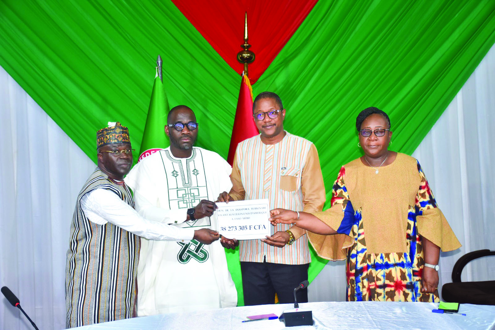 La diaspora burkinabè poursuit sa solidarité et son appui aux initiatives de développement de la mère Patrie. Le mardi 27 janvier 2026, les délégations de la diaspora des Etats-Unis d’Amérique et du Ghana, précisément la ville de Koumassi ont fait un don cumulé de plus de 42 millions de francs CFA en soutien à l’Agence Faso Mêbo et le Fonds de soutien patriotique (FSP). En effet, la diaspora américaine a, au cours de cette donation, remis 38 273 305 francs CFA. Les donateurs ont précisé que le don va à l’Agence Faso Mêbo pour aider à accélérer les chantiers de construction en cours dans le pays.