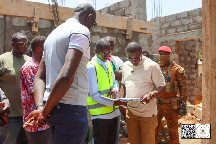 Le Ministre Directeur de Cabinet du Président du Faso, le Capitaine Martha Céleste Anderson Dekomwin MEDAH a effectué les 23 et 24 août derniers, une visite des chantiers de construction d’un centre médical communal à l’infirmerie de la garnison du camp Thomas-Sankara de Pô et d’un amphithéâtre de 500 places, à l’université de Manga pour constater l’évolution des travaux.