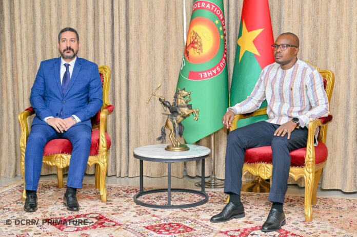 Le Premier ministre, Rimtalba Jean Emmanuel Ouédraogo, a accordé, ce mardi 10 mars 2026, une audience à l’ambassadeur du Royaume du Maroc au Burkina Faso, Youssef Slaoui. Le chef du gouvernement et le diplomate marocain ont échangé sur les axes prioritaires de la coopération bilatérale entre les deux pays.