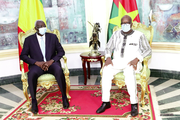 Le président de la Transition du Mali, Bah N’Daw, a effectué une visite d’amitié et de travail au Burkina Faso, le samedi 13 février 2021. Il a été reçu par le Chef de l’Etat burkinabè, Roch Marc Christian Kaboré, à Ouagadougou.