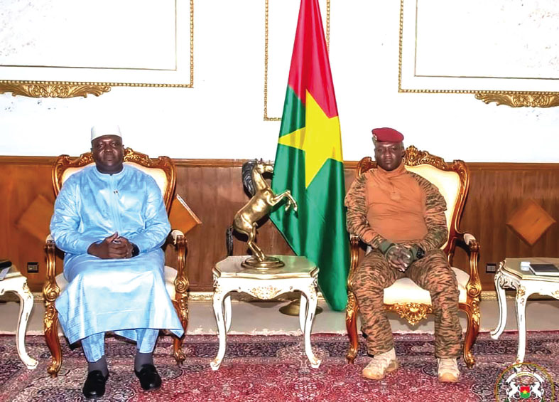 A la tête d’une délégation, le ministre Abdoulaye Maïga est porteur d’un message du Président de la République du Mali, le colonel Assimi Goïta à son homologue burkinabè, le capitaine Ibrahim Traoré. « Le Mali et le Burkina Faso ont des défis communs aussi bien sur le plan sécuritaire que sur le plan sociopolitique et économique, et cela nécessite une concertation permanente », a soutenu le chef de la délégation malienne à l’issue de l’entretien avec le président de la Transition. Selon le ministre de l’Administration territoriale et de la Décentralisation du Mali, « le chef de l’Etat, le capitaine Ibrahim Traoré, à l’occasion de l’audience, nous a prodigué de sages conseils pour maintenir le cap et relever ces défis qui se posent à nous au bénéfice de nos populations ».