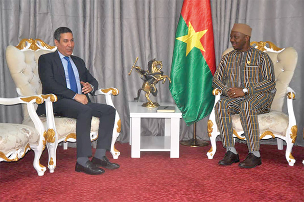 Le Royaume du Maroc veut renforcer ses relations diplomatiques avec le pays des Hommes intègres. C’est ce qu’à fait savoir son ambassadeur, en poste au Burkina Faso, Youssef Slaoui, à l’issue d’une audience avec le Président de l’Assemblée législative de Transition (ALT), Ousmane Bougouma, dans la matinée du jeudi 27 avril 2023. En effet, le diplomate marocain a signifié, à sa sortie d’audience, que cette visite chez le chef du parlement burkinabè avait pour but de faire le point de l’état d’avancement de la coopération bilatérale entre les deux pays et de discuter des perspectives. Youssef Slaoui a souligné que les relations historiques et profondes entre le Royaume du Maroc et le Burkina Faso sont excellentes et devront se renforcer au bénéfice de tous. Cela, a-t-il indiqué, à travers la diplomatie parlementaire qui constitue, selon lui, un pilier dans les relations entre les deux états. Pour l’ambassadeur marocain, cette audience avec Ousmane Bougouma a aussi été une occasion pour lui d’évoquer les opportunités et les moyens qui permettront d’appuyer l’ALT afin de faire avancer les relations diplomatiques à travers la diplomatie parlementaire. Il a exprimé sa satisfaction pour la suppression des visas entre les deux pays, à la suite de l’accord signé à Dakhla le 23 Octobre 2020, afin de favoriser la libre circulation des capitaux et des biens et services. « Cette initiative constitue un acte très symbolique en termes d’intégration sous régionale. Car cette intégration commence d’abord par la liberté de circuler des peuples », a déclaré Youssef Slaoui.