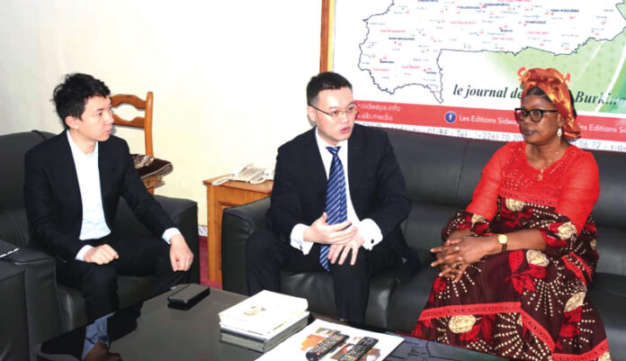 L’ambassade de la République populaire de Chine au Burkina Faso est reconnaissante au groupe de presse « Les Editions Sidwaya » à travers le professionnalisme consacré au traitement des informations relatives à la visibilité de ses projets et programmes. En vue de réaffirmer son attachement à ce partenariat, une équipe de l’ambassade conduite par le conseiller politique, Wenzhang Wang a été reçue en audience par la directrice générale des Editions Sidwaya, Assetou Badoh, dans la matinée du vendredi 9 mai 2025 à Ouagadougou.