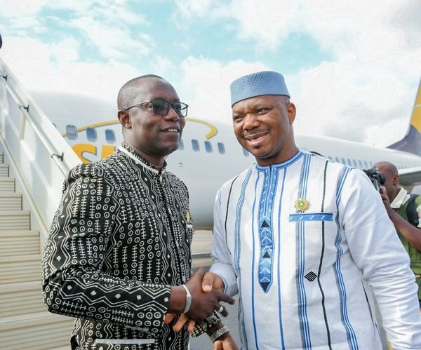 Malick DIAW a été accueilli à sa descente d’avion par son homologue burkinabè, Dr Ousmane BOUGOUMA, accompagné des membres de son bureau.