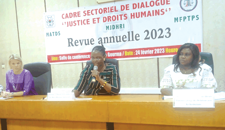 La ministre en charge de la justice a exhorté les acteurs du secteur à une synergie de compétences afin de relever les défis énumérés. La représentante-résidente adjointe du PNUD par intérim, cheffe de file des Partenaires techniques et financiers (PTF), Isabelle Tschan, a félicité le gouvernement pour les acquis et les résultats atteints dans les domaines de la justice et des droits humains en 2022.