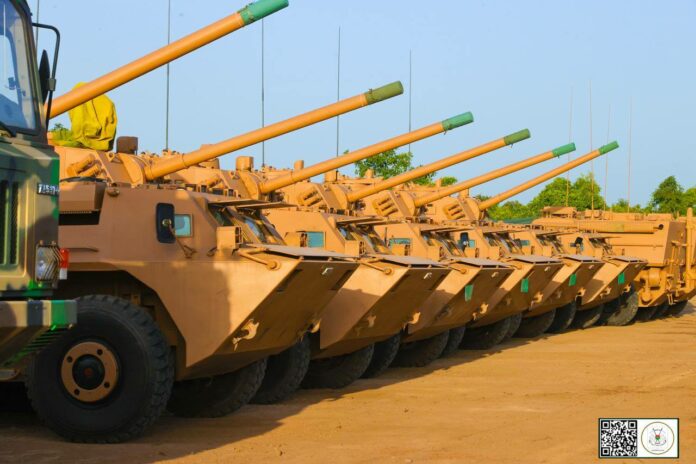 Il s’agit de véhicules blindés et d’autres types de véhicules de combat acquis au profit des Forces armées nationales notamment du Bataillon d’artillerie de campagne et d’intervention rapide (BACIR) et du Bataillon blindé d’intervention rapide (BBIR).