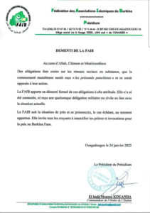 LA UNE SITEPOLITIQUE DEMENTI DE LA FAIB Par JK. Sidwaya - 27 janvier 2022 FacebookTwitterPinterestWhatsAppLinkedinE-mailImprimerTumblrTelegramViberNaver
