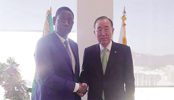 de cet organisme intergouvernemental, Ban Ki-Moon, le ministre de l’Environnement, de l’Economie verte et du Changement climatique, Batio Bassière, a réitéré l’engagement de son pays dans la transition vers une économie verte et inclusive. Il a promis que le pays des Hommes intègres mettra l’accent sur l’appui à l’accréditation des entités d’accès directs au crédit du Fonds vert pour le climat, à la mise en œuvre des directives-cadres pour les villes vertes et du programme d’investissement dans les écovillages.