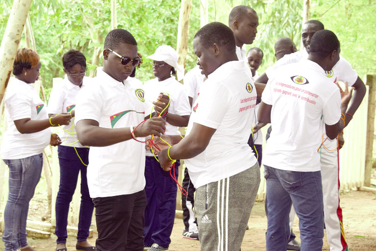 Le deuxième jeu consistait pour chaque participant d’attacher chaque main à un bout avec une corde et se lier ensuite avec un partenaire. Les deux doivent trouver une technique pour briser le lien sans pourtant détacher les cordes. S’impliquer davantage «De la manière dont vous êtes liés, c’est comme si vous étiez en conflit avec votre partenaire. La mauvaise résolution du conflit peut entraîner un autre, plus grave», a interprété Daouda Koné. Pendant que certains trouvaient l’exercice impossible, il a fait savoir que face à une difficulté, l’attitude mentale est importante. Même si vous échouez dans la recherche de solutions, a-t-il soutenu, vous devriez vous dire qu’il en existe une. «Il y a aussi l’exercice des pieds liés pour leur faire comprendre qu’ils sont dans une même barque et de ce fait, ils doivent s’avertir quand il y a un problème. Le jeu des écrous leur permet d’avoir une concentration hors pair parce que leur travail demande de la clarté, de la précision et la distraction peut avoir des conséquences graves sur l’atteinte des résultats», a ajouté le coach.