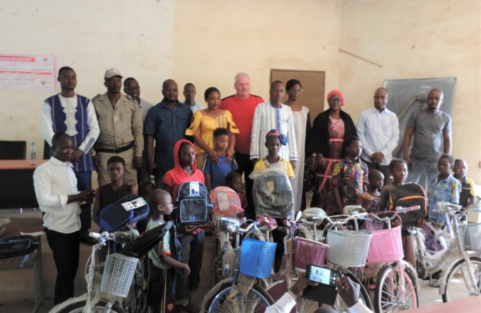 L’Association burkinabè pour la Promotion de la Santé et l’Education des Personnes vulnérables (ABPSEPV) a remis, samedi 27 août 2022, à Manga, dans la province du Zoundwéogo, un lot de fournitures scolaires et des vélos à 70 élèves de la commune de Manga issus de familles démunies.