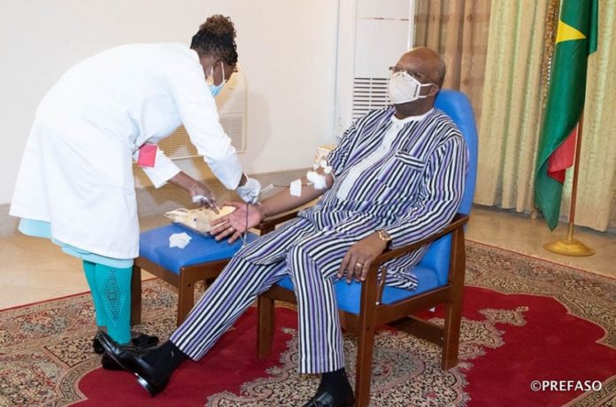 Le Centre national de transfusion sanguine (CNTS) éprouve de plus en plus des difficultés à répondre aux besoins des malades en sang dans les formations sanitaires en cette période de vacances où la demande est très forte. Pour voler au secours des patients, l’Association SOS sang, a organisé le jeudi 9 juillet 2020, en collaboration avec le CNTS, une opération de collecte de sang auprès des travailleurs de la présidence du Faso. C’est le président du Faso, Roch Marc Christian Kaboré, lui-même qui a donné le top de départ en se faisant prélever une poche de sang. Il a saisi l’occasion pour inciter tous les Burkinabè à participer aux opérations de don de sang qui permettent de sauver des vies. « C’est un acte de solidarité à l’égard des malades qui expriment le besoin et il n’y a aucune autre manière d’exprimer cette solidarité que de donner une partie de soi pour sauver les autres », a-t-il déclaré. Il a salué les efforts des associations des donneurs de sang qui se battent aux côtés du Centre nationale de transfusion sanguine pour récolter des poches de sang au profit des malades dans les différentes formations sanitaires. L’Etat doit trouver des moyens, a dit le président Kaboré, pour accompagner les structures, consolider les acquis en matière de don de sang et étendre les actions de collecte à tous les niveaux. « Des demandes en don de sang sont diffusées à travers les medias pour répondre aux besoins des patients en détresse et je pense que plus nous anticipons, mieux cela vaudra pour tous car des vies seront sauvées à temps », a fait savoir le chef de l’Etat. Selon le président national de l’Association SOS sang, Jean-Bosco Zoundi, actuellement les besoins des services de santé en sang sont très élevés alors que le Centre national de transfusion sanguine ne dispose pas d’un stock de sang à cause de la fermeture anticipée des établissements scolaires du fait de l’épidémie de coronavirus. A l’écouter les élèves contribuaient beaucoup aux dons de sang et leur départ précipité a compliqué la tâche au CNTS. « A travers cette collecte de sang auprès du personnel de la présidence avec le chef de l’Etat en tête vise à contribuer à résorber un tant soit peu, les difficultés liées à la disponibilité de sang », a-t-il dit. De son avis, l’acte posé par le président va interpeller les autres services de l’administration publique comme privée à donner aussi de leur sang pour sauver des vies. Selon les organisateurs de cette opération de collecte, environs 100 poches de sangs seront collectées au palais présidentiel de Kosyam mais l’opération devra se poursuivre dans les services rattachés à la présidence du Faso.