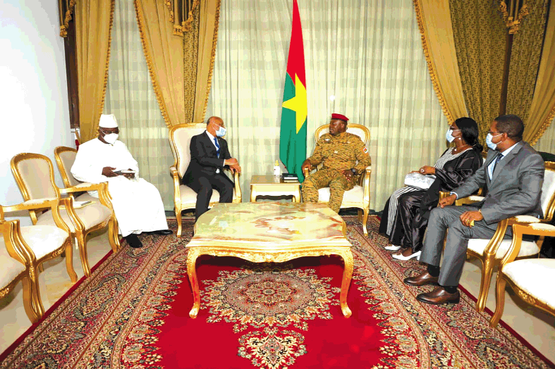 Le Président du Faso, le lieutenant-colonel Paul-Henri Sandaogo Damiba, a reçu en fin d’après-midi du vendredi 1er avril 2022 à Ouagadougou, une délégation de la CEDEAO, avec à sa tête le président de la Commission, Jean-Claude Kassi Brou. Les émissaires de l’organisation sous régionale étaient porteurs d’un message du président en exercice de la Conférence des chefs d’Etat et de gouvernement de la CEDEAO, Nana Akufo Addo.