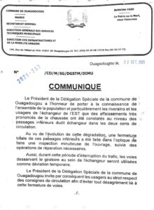 Le président de la délégation spéciale de Ouagadougou a annoncé la fermeture totale des passages inférieurs de l’échangeur de l’Est.