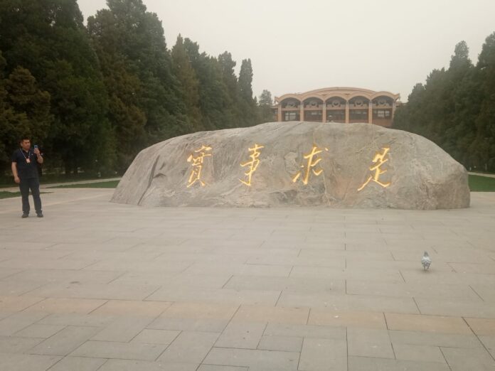 Cette expression populaire et vivante résume la ligne idéologique marxiste du PCC. Elle traduit l’exigence fondamentale pour que les communistes chinois comprennent et transforment le monde, et constitue la méthode de base du Parti pour penser, travailler et diriger. Persister à rechercher la vérité à partir des faits est une arme magique importante pour le PCC pour diriger le peuple dans la promotion de la révolution, de la construction et de la réforme pour remporter continuellement des victoires.