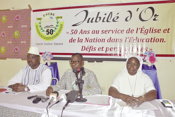 L’Union nationale des établissements secondaires catholiques (UNESC) a convié la presse, le jeudi 28 novembre 2019 à Ouagadougou, pour leur dévoiler les différentes activités de clôture de son jubilé d’or, prévu du 5 au 7 décembre prochain.