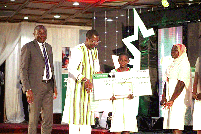 Il a obtenu comme moyenne annuelle, 19,41 en classe de 6e ; 19,45 en 5e ; 19,53 en 4e ; 18,05 en 3e et 17,57 en classe de seconde C. Il est reparti avec une offre de bourse de 5 millions F CFA de l’Institut supérieur privé polytechnique (ISPP), partenaire des TH. La plus jeune lauréate est Dao Fatoumata qui a décroché son certificat d’études primaires avec une moyenne de 9,5/10. Il y a également les heureuses, Kaboré Rihanata avec 18,77 de moyenne au BEPC, Zogona Sanata avec 16,50 au BEP et enfin Ouédraogo Farida avec 17,96 de moyenne au BAC.