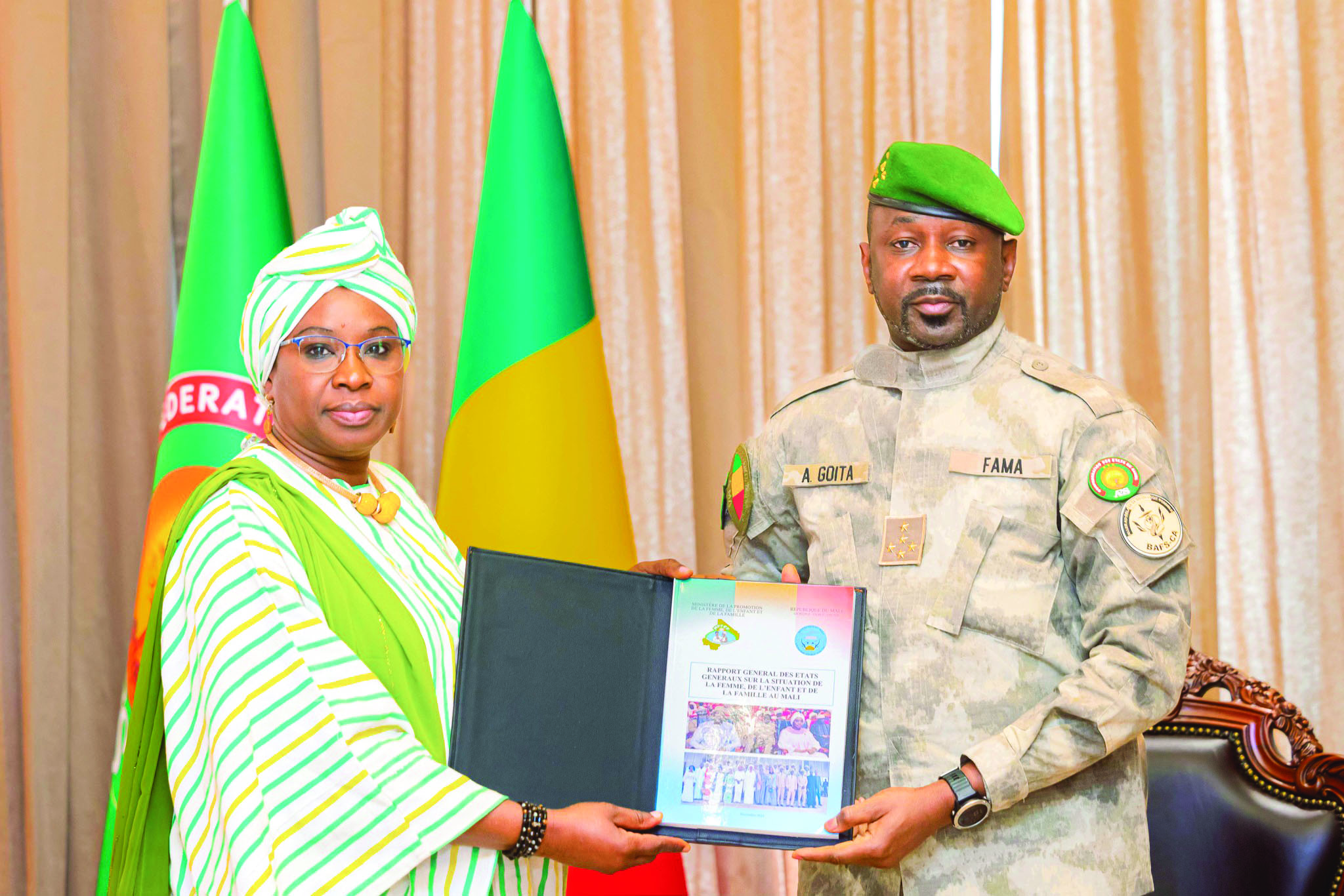 Le Président de la Transition, le général d’Armée Assimi Goïta, a reçu jeudi 19 février 2026 à Bamako, le rapport général des Etats généraux sur la situation de la femme, de l’enfant et de la famille. Le document lui a été officiellement remis par la ministre de la Promotion de la Femme, de l’Enfant et de la Famille, Djénéba Diarra, accompagnée d’une importante délégation comprenant les membres de la Commission nationale d’organisation ainsi que du bureau de la Plateforme nationale des femmes du Mali, section AES.