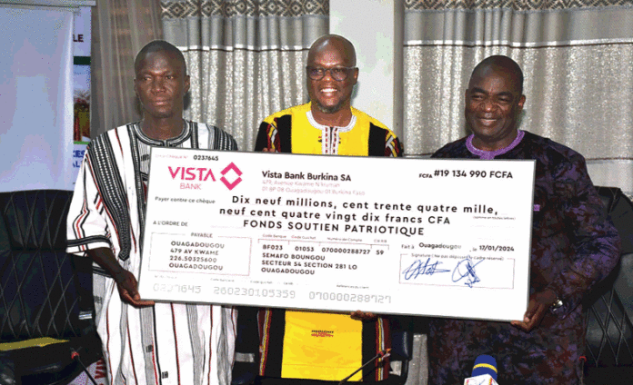 Les Burkinabè et les amis du Burkina Faso ne cessent de répondre à l’appel à l’effort de paix. Ils alimentent au quotidien le Fonds de soutien patriotique (FSP) mis en place à cet effet. La société minière SEMAFO Boungou Mining, avec un chèque de 19,1 millions F CFA, des ressortissants de la province de l’Oudalan dans la région du Sahel avec 4,5 millions F CFA et la promotion 1978-1982 du lycée Philippe Zinda Kaboré, avec un don de 2 millions F CFA, soit une contribution totale de 25,7 millions F CFA ont traduit leur attachement à la Nation, hier jeudi 25 janvier 2024, à Ouagadougou.