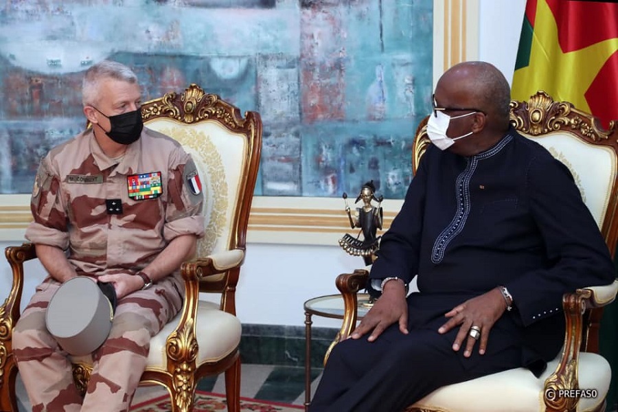 Le commandant de la Force Barkhane, le général Marc Conruyt, est en fin de mission. Il est allé faire ses adieux au Président du Faso le mercredi 21 juillet 2021 à Kosyam.