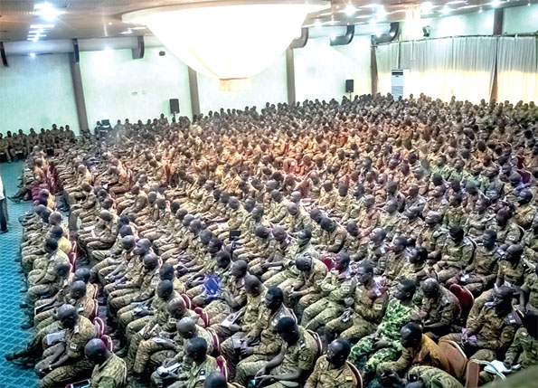 Pour le chef d’Etat-major général des Armées, le général de brigade Célestin Simporé, le terrorisme est monté de toutes pièces par les intelligences qui ne veulent pas l’épanouissement de nos pays et de nos peuples. Pour ce faire, « il est impérieux de se mettre ensemble pour sauver ce que nous avons de commun, notre pays », a soutenu le général de Brigade Simporé. Selon le chef d’Etat-major général des Armées, en 2023, l’armée a vu ses effectifs se renforcer par un recrutement massif de militaires toutes catégories confondues et de Volontaires pour la défense de la patrie. « En termes de maillage du territoire, notre pays est passé de trois régions militaires à 6 régions et nous sommes en train d’aller à 25 Bataillons d’interventions rapides (BIR) », a soutenu le général de brigade Simporé qui a relevé les efforts d’acquisition de moyens aériens pour soutenir les troupes au sol. Au cours des échanges, le personnel militaire a apprécié les efforts fournis en matière d’acquisition de matériel de combat et en matière de motivation des éléments sur le terrain. Rassurés des réponses apportées par la hiérarchie aux quelques préoccupations soulevées, le personnel militaires et les VDP ont renouvelé leur engagement à combattre l’ennemi, libérer le pays et permettre un retour des personnes déplacées internes dans leurs localités d’origine.