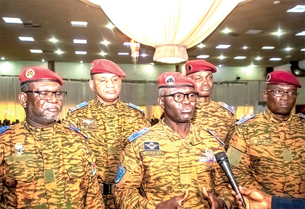 Cette rencontre élargie aux Volontaires pour la défense de la patrie (VDP) a été une occasion de faire le bilan de l’année 2023, de formuler des vœux pour une année meilleure et de se projeter dans la guerre pour la reconquête du territoire national. A cette occasion, le ministre de la Défense et des Anciens combattants a tenu à féliciter et à encourager les Forces combattantes engagées sur le front de la lutte contre le terrorisme. Aussi, a-t-il invité le personnel militaire à consolider les énormes acquis engrangés et à une collaboration étroite empreinte de fraternité avec les VDP pour des victoires plus éclatantes en 2024. Il a également salué les efforts et la grande contribution du peuple burkinabè à travers le Fonds de soutien patriotique qui a permis des acquisitions sans précédent pour les Forces combattantes. Tout en invitant le personnel militaire à une gestion rigoureuse du matériel mis à sa disposition, le général Kassoum Coulibaly a insisté sur la nécessité de bien gérer et maîtriser les effectifs des Forces armées nationales. Pour ce faire, il a invité les responsables des ressources humaines des Armées à être plus regardants sur la présence effective du personnel engagé. Le général Kassoum Coulibaly a saisi l’occasion de la rencontre pour sensibiliser les militaires sur la nécessité de rester professionnel en évitant l’attachement au gain facile, cause des velléités de déstabilisation de la Transition. « Restons sur le droit chemin, restons militaires, restons professionnels », a-t-il souligné en appelant les militaires à agir pour l’intérêt national, celui du peuple.
