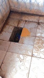 Les yeux pétillants, elle le porte avidement à la bouche. La maman dandine d’impatience sur un pied, le regard absorbé par les morceaux de viande de bœuf que le boucher fait revenir sur sa grille artisanale. Derrière le vendeur, à une dizaine de mètres, se trouve le petit coin. Trois latrines à usage commun, dont les rebords ne dessèchent presque jamais de matières fécales posées par des usagers indélicats ou trop pressés.