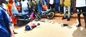 Agée de 59 ans, Aminata Nacanabo, résidant au quartier Rimkieta de Ouagadougou vient de « finir » ses courses sur un pont à quelques mètres du château d’eau de l’Office national de l’eau et de l’assainissement (ONEA) de Balkuy. Alors qu’elle se rendait à Koubri, une commune rurale, pour des raisons familiales, elle a heurté violemment les barrières latérales du pont visiblement colées à la piste cyclable. Tombée seule, sans casque, son accident brutal bloque la circulation sur la piste cyclable. Au sol, elle perd connaissance sur le coup. La tête reste intacte. La moto, à côté d’elle commence à s’éteindre peu à peu. Sur son pied droit, le constat est alarmant. Une fracture ouverte laisse jaillir du sang sur le bitume. A vu d’œil, le tissu de son pagne s’imbibe au fur et à mesure. Les passants commencent à s’attrouper.
