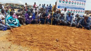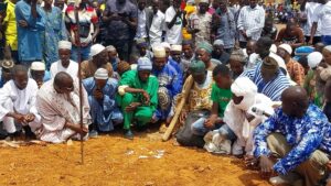 Après les yonyonsés, la communauté peuhle. Amadoun Diallo représente son père, le chef peuhl du canton de Louda frappé par l’âge (104ans). La communauté vit en parfaite symbiose avec les autres communautés dans le royaume de Boussouma depuis 500 ans. Pour intercéder auprès de leurs ancêtres, les peuhls utilisent une lance de combat, un pilon, une calebasse, un œuf et du lait, les objets constitutifs de la paix. La lance est fixée au sol avec le bout couvert d’une rafle de maïs soutenue par un pagne traditionnel blanc dirigé vers le ciel. Le pilon est soigneusement emballé d’un tissu percale blanche. Filiforme, teint noir et vêtu d’un boubou à la couleur de guépard accompagné d’un bonnet vert-marron fixé solidement sur sa tête, Amadoun Diallo s’accroupit. Il sort de son sac noir, une calebasse et du lait soigneusement conditionné dans un sachet tout aussi noir. Le lait est ensuite renversé dans la calebasse. Amadoun formule des vœux. « Du levant au coucher du soleil. Du nord au sud. Des sept cieux aux sept terres. A partir de ce jour 29 juillet, la communauté peuhle implore Dieu, la terre sur laquelle nous sommes assis, au nom des fétiches, que celui qui commettra un mal à autrui, n’excède pas 7 jours. Qu’il s’agit de Poko ou Raogo. Que les devanciers l’attrapent », lance le sage à la barbichette blanche. Le lait est versé au sol et l’œuf écrasé avec le pilon. Quelques pièces de monnaie sont jetées à terre comme offrande. Des acclamations accompagnent l’acte posé.