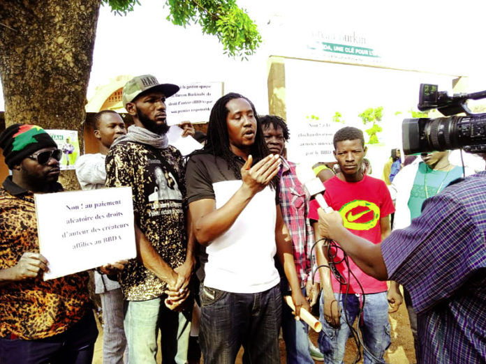 Burkina (SYNAMUB) ne sont pas satisfaits de la gestion de leurs droits d’auteur. Ils ont initié, à cet effet, le mardi 3 novembre 2020, un sit-in devant le siège du Bureau burkinabè du droit d’auteur (BBDA). « Les artistes et créateurs burkinabè sont payés de manière aléatoire. Le BBDA ne dispose pas, en effet, à ce jour, d’un logiciel unique de comptabilisation. Et c’est ce que nous réclamons en cette matinée », a déclaré le SG du SYNAMUB, l’artiste- musicien, Abdoul Kader Ouattara alias Almamy KJ. En outre, concernant les différents fonds destinés à soutenir les artistes face aux effets pervers de la maladie à Coronavirus, il a soutenu que la plupart des bénéficiaires n’ont pas encore perçu leurs dûs. C’est pourquoi, le SYNAMUB exige, entre autres, à travers sa plateforme revendicative minimale, une publication des listes exhaustives et nominatives des bénéficiaires du Fonds exceptionnel de solidarité (FES), la transparence dans l’attribution du Fonds de promotion culturel (FPC), un audit financier du BBDA avec la participation des organisations d’artistes et la dotation de tous les médias audiovisuels d’un logiciel unique de comptabilisation des œuvres musicales exploitées. Que fera le SYNAMUB en cas de non-satisfaction de sa plateforme revendicative ? Répondant à cette question des journalistes, le reggaeman Almamy KJ a indiqué que les militants du SYNAMUB engageront d’autres actions pour « mieux se faire entendre ».